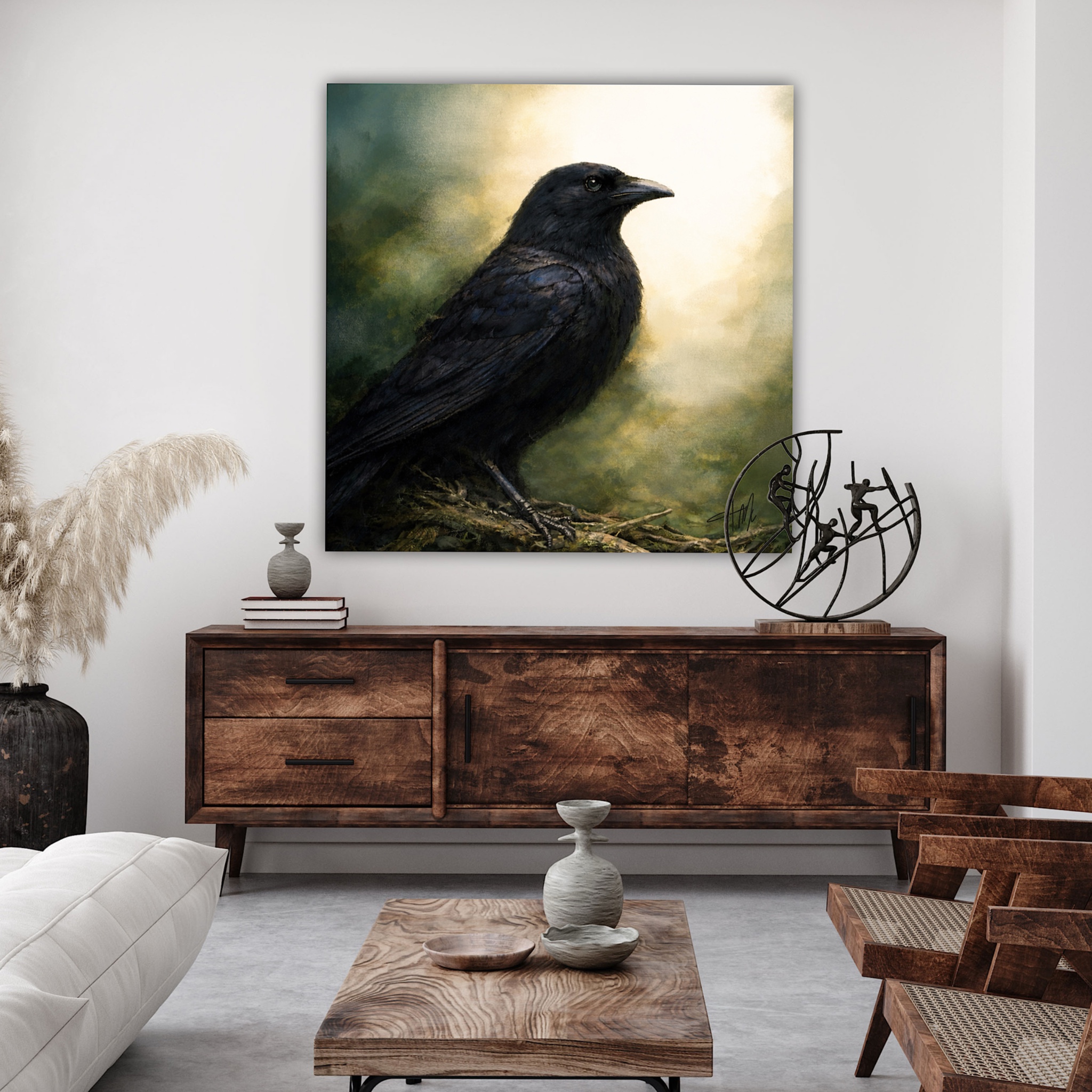 Canvas is hand-stretched onto a solid pine wood frame